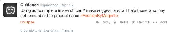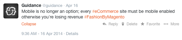 Using the hashtag #FashionByMagento, we drove a spirited conversation on Twitter and had some great follow up feedback in the Q&A portion of the presentation: